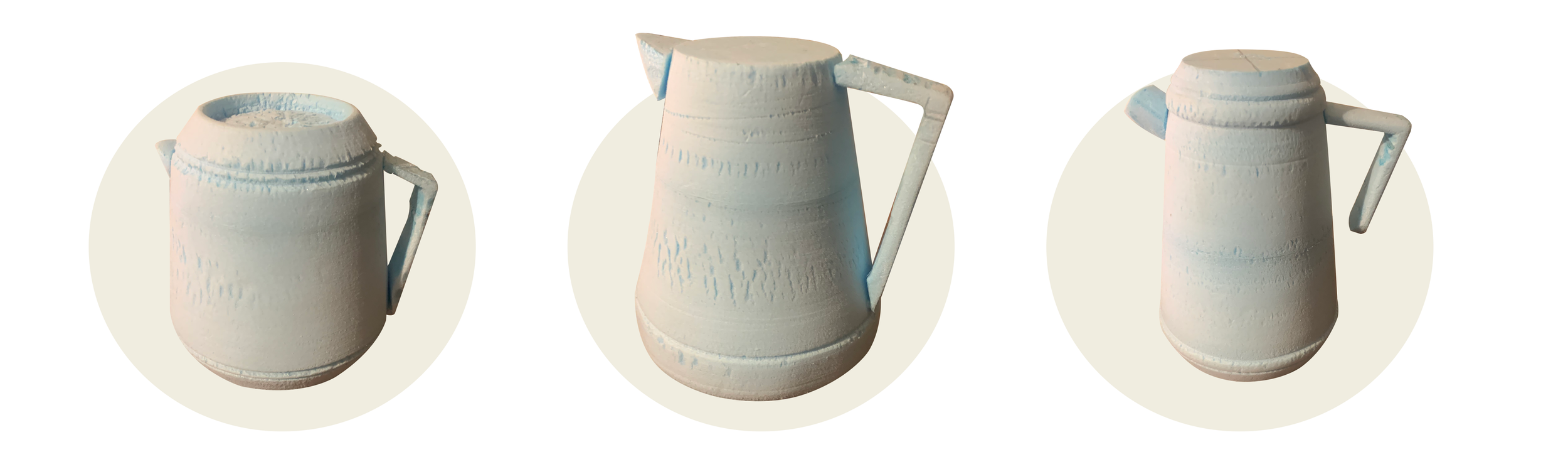 In these models, I aimed to delve deeply into form and ergonomics. However, upon closer consideration of ergonomics, it became evident that they fell short, placing the wrist and hand in awkward positions during pouring. Exploring form further, I realised that meticulous attention to width and height was crucial for optimal design.