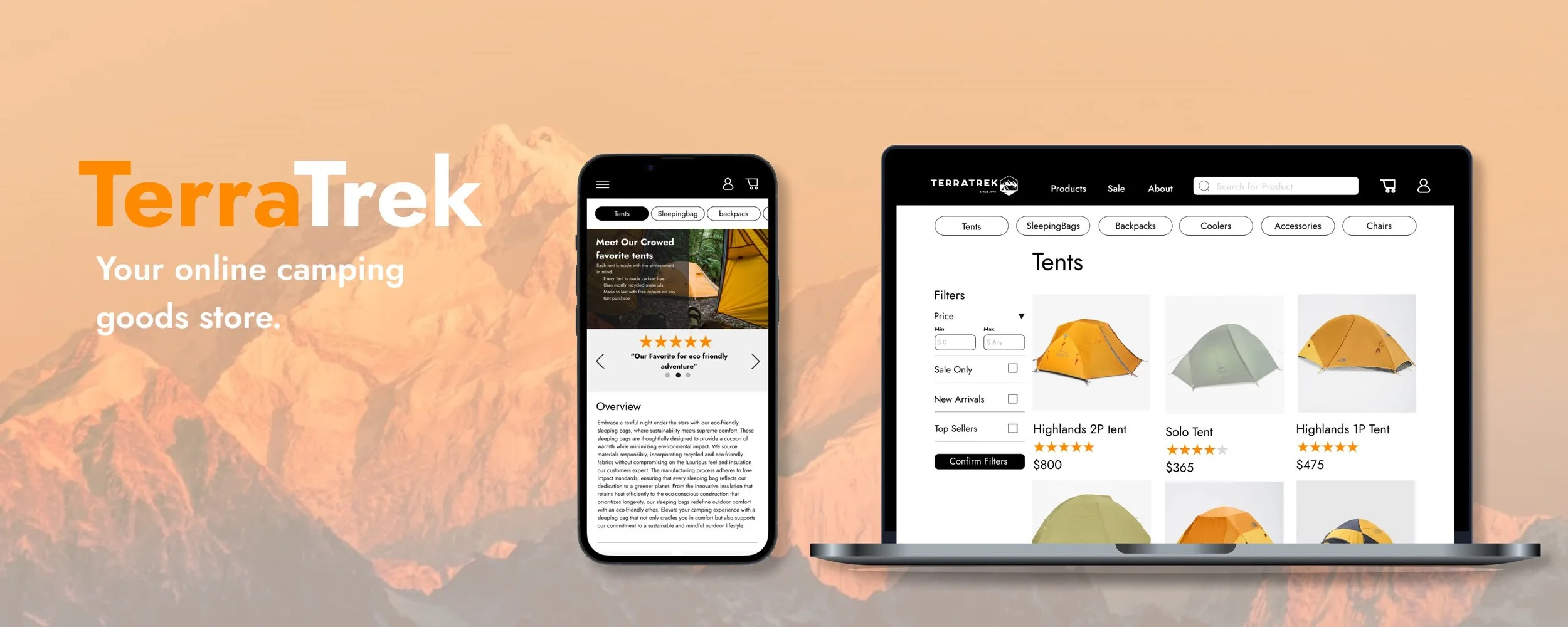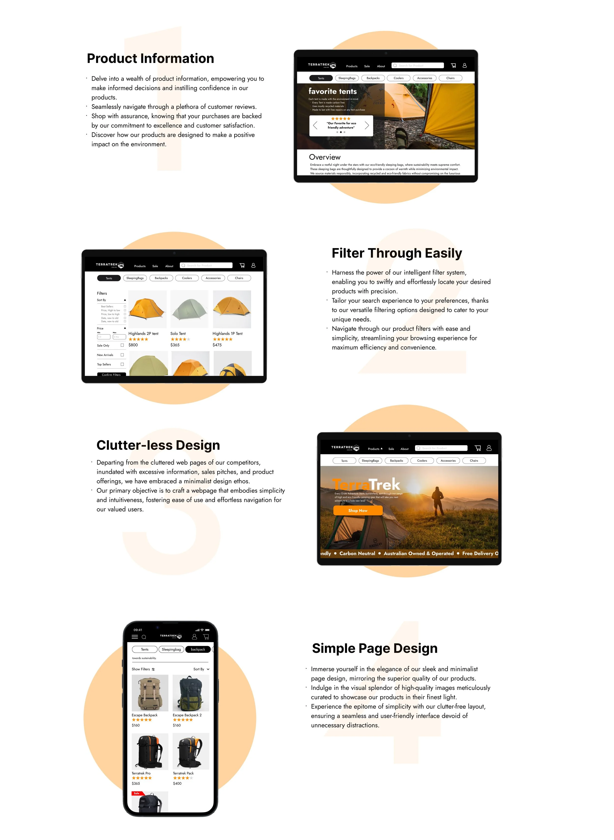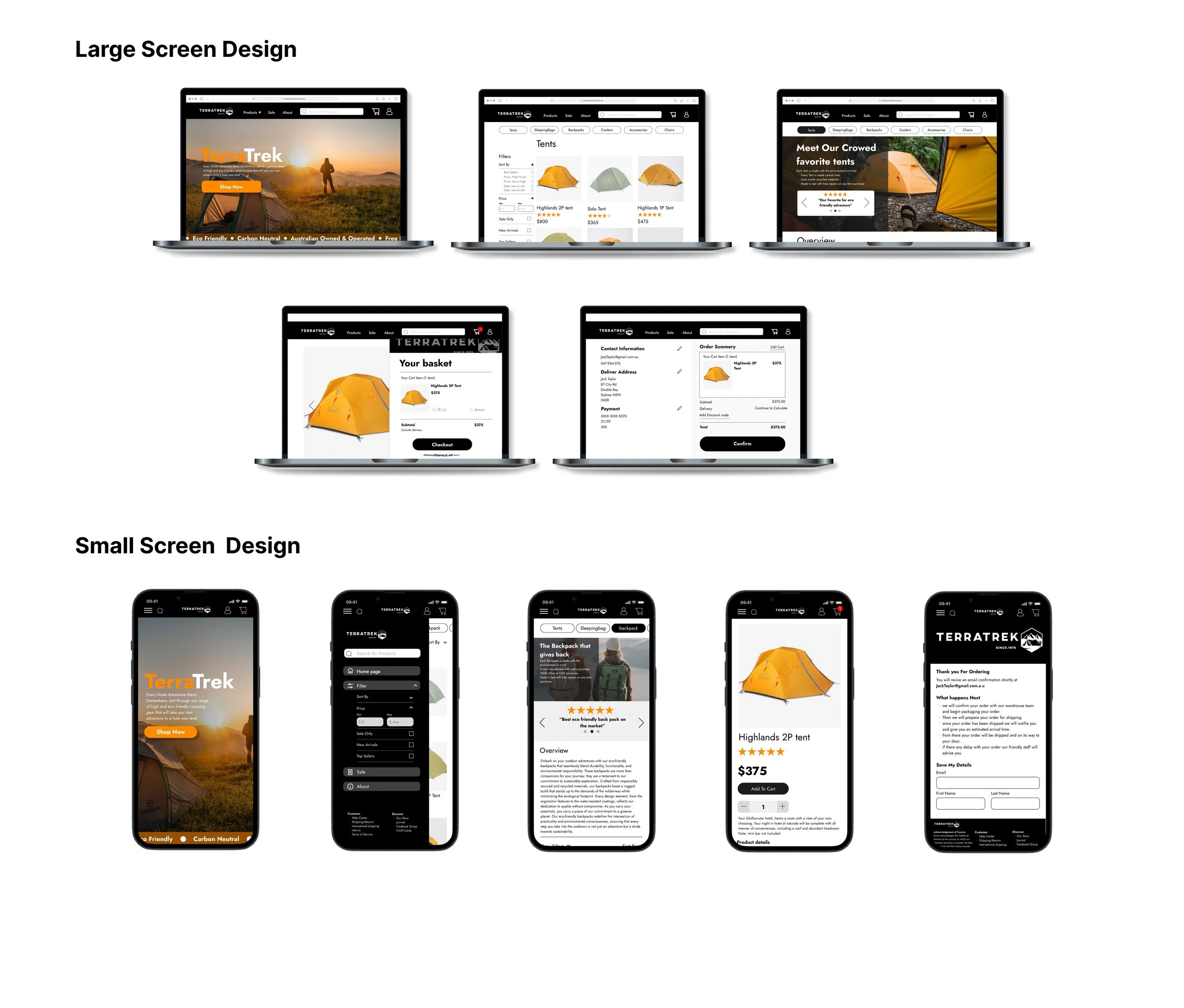 Design a responsive website and app for an online camping store (Terratrek), the app and website must reflect the company’s values and showcase their range of products.