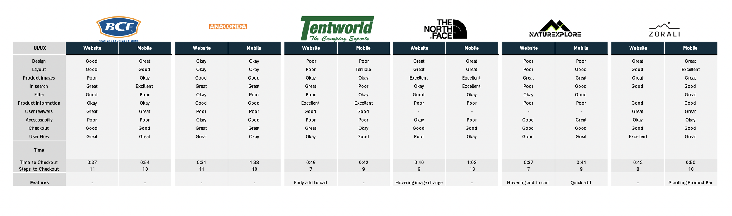 Through my competitive audit and user research, I found that many online camping stores had too much clutter, whether this be through too much information, products, promotion or images, there was too much going on. This affected the overall usability of the website and also diminished the product’s value.