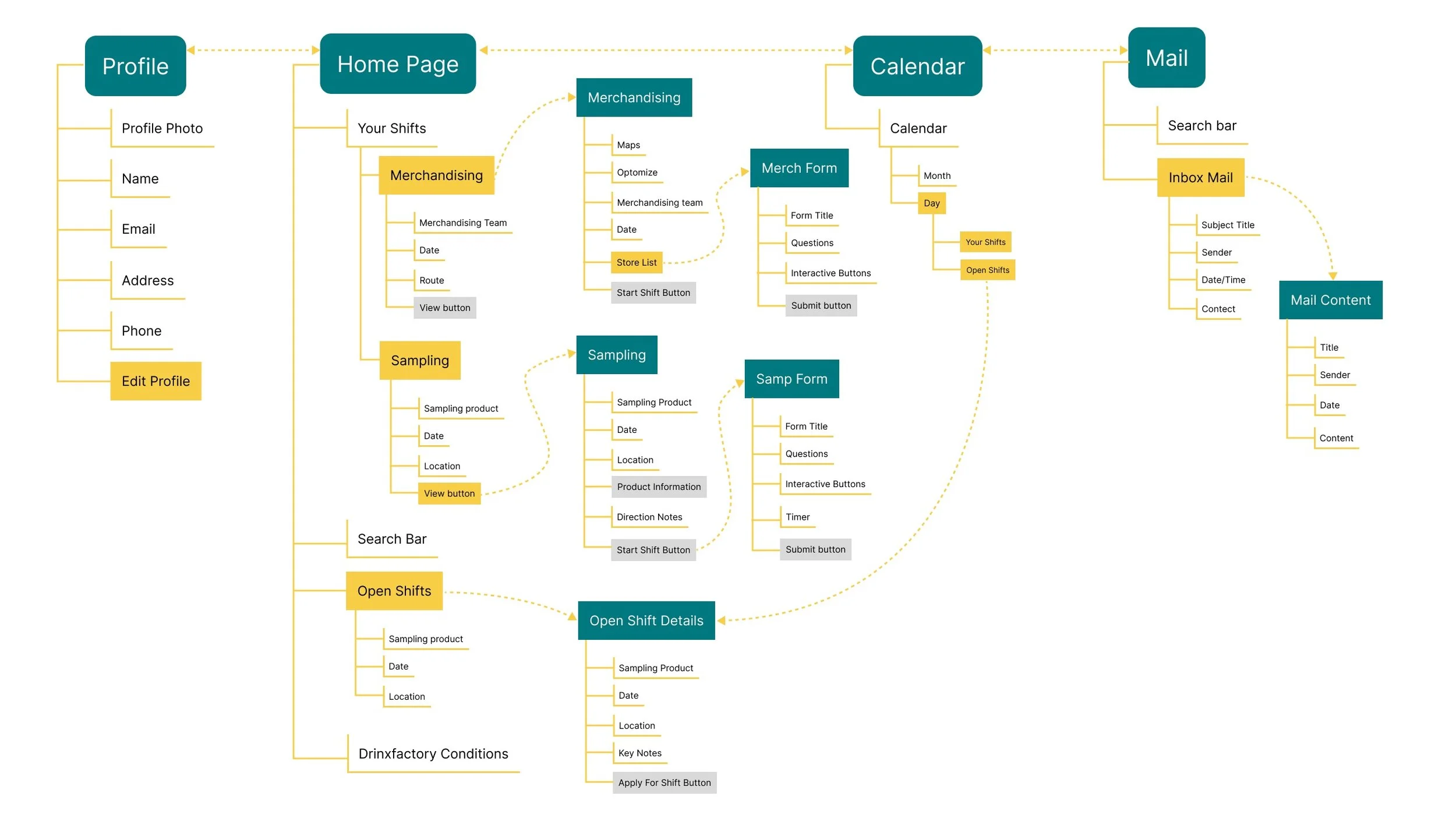 To gain a clearer understanding of the layout and user flow, I created a simplified information architecture. This ensured I had a solid foundation of what each page required, aiding me in designing with the confidence that necessary information was appropriately placed. While subject to adjustments, this reference proved invaluable throughout the design process.