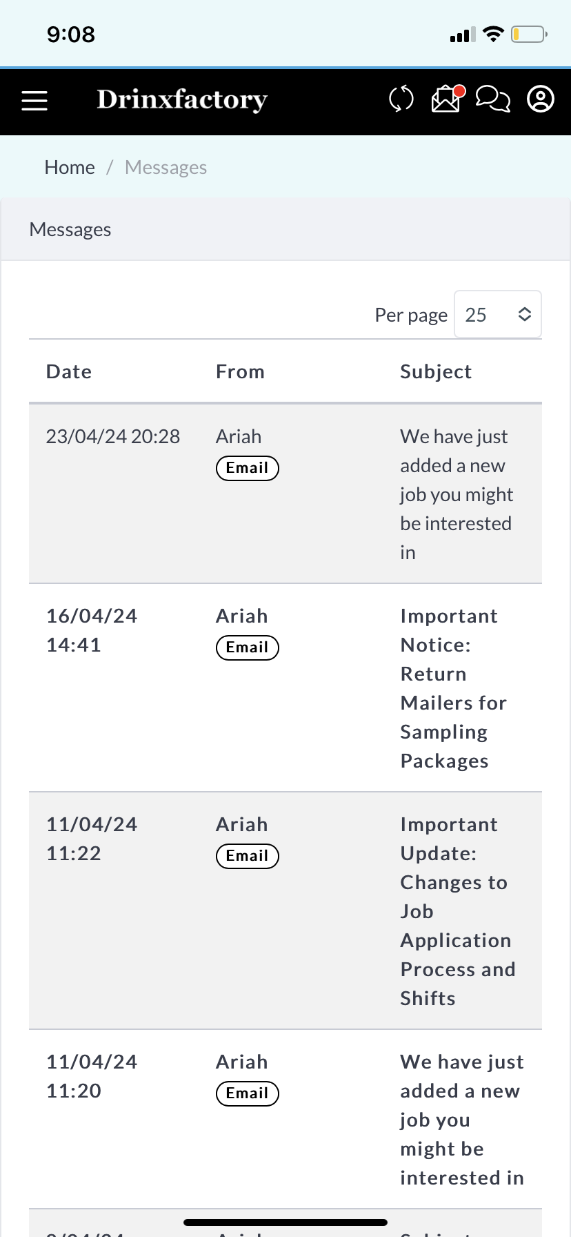 Apply for Sampling Shifts: Open sampling shifts are posted on the Drinxfactory portal, enabling employees to view and apply for their preferred jobs directly from their phones.